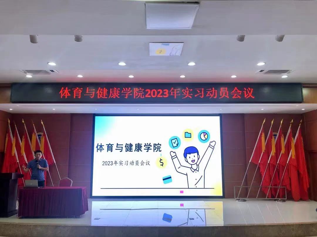 级体育运营与管理专业实习动员大会,学院黄闻寰副院长、教务办郭柏成副主任、教师代表以及全体