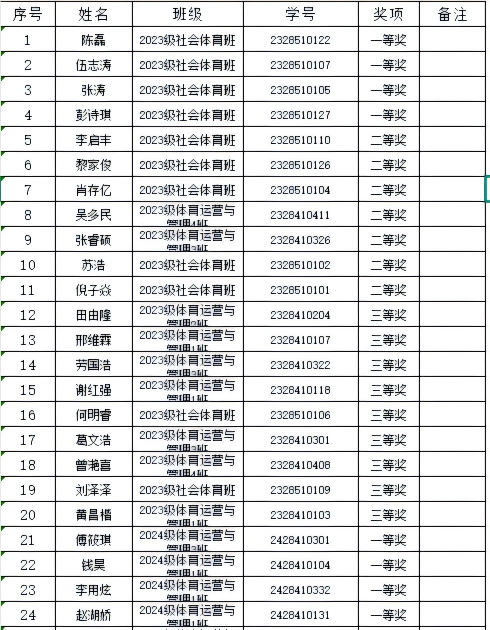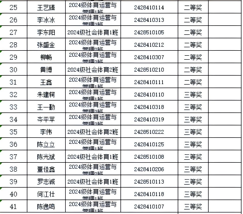 根据《关于评选2024—2025学年学院奖学金的通知》精神,我院于近期组织进行了2024—2025学年度学院奖学金评审工作。今年我院学院奖学金推荐名额41名,一等奖学金 8人 ,二等奖学金14人, 三等奖学金19人。经过学生本人申请,辅导员审核,并经我院学生奖助学金评审小组会议2025年9月15日审议通过,确定: