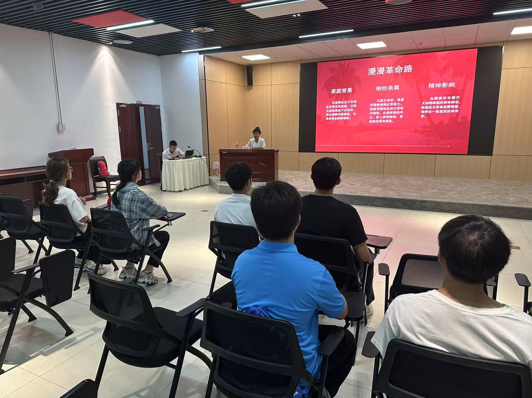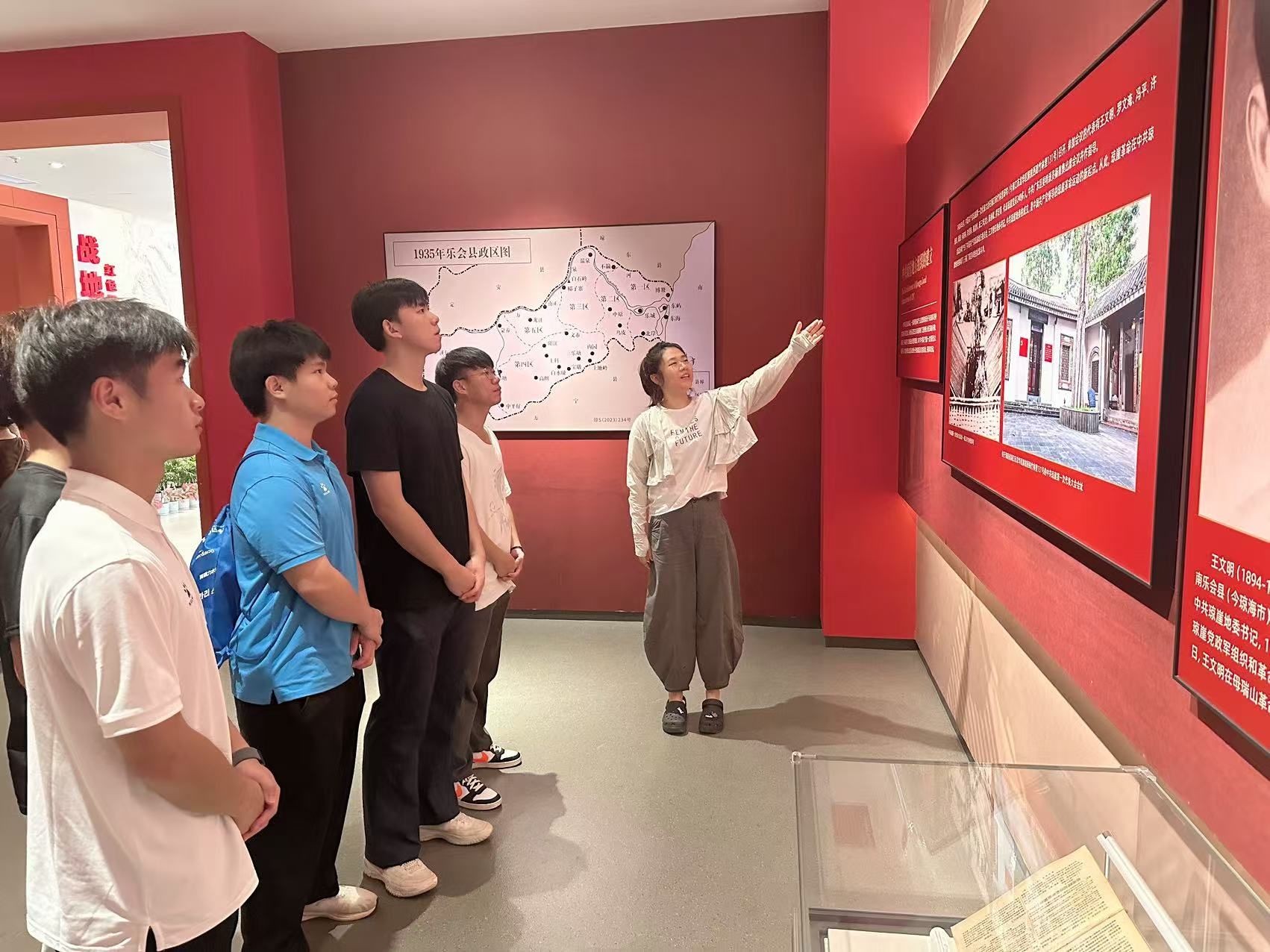 7月1日,实践团首站抵达红色娘子军纪念园。纪念馆内,一件件珍贵的历史文物、一幅幅生动的斗争画卷,将那段波澜壮阔的峥嵘岁月重现眼前。同学们被娘子军战士“巾帼不让须眉”的坚定信念、不屈斗志和牺牲精神深深震撼。“她们在如此艰难的环境下为理想奋斗,作为新时代青年,我们更应珍惜当下,坚定理想信念,将个人奋斗融入时代洪流。” 学生代表傅筱琪在参观后动情地表示。学生党支部党员教师张晓阳在现场勉励大家,要从红色娘子军精神中汲取信仰的力量,传承革命先辈的红色基因,担当时代赋予的使命。